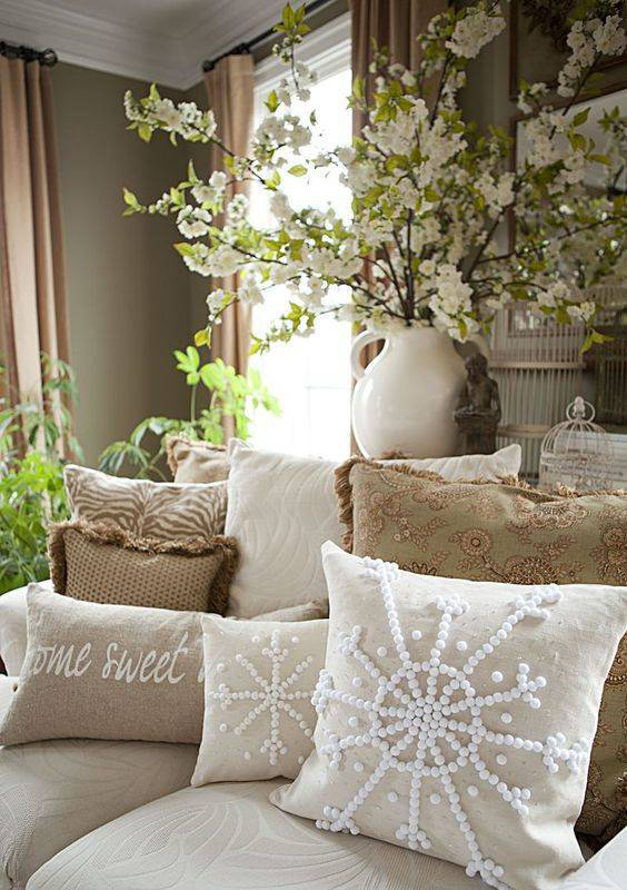 起居室的空间相对开阔,所以在使用花艺或绿植装饰时, 应注意多种形式的组合使用。