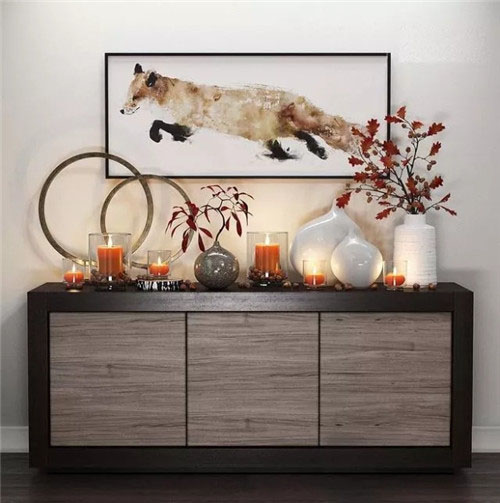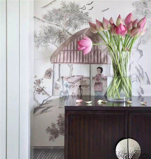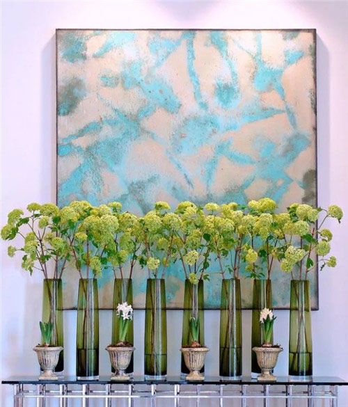 港式风格喜用亮亮的金属材质,新中式风惯用古拙的陶瓷器具,现代简约风更是不拘一格,花艺和艺术品不分家,花瓶就是艺术摆件,还能给你生出一个小景来。