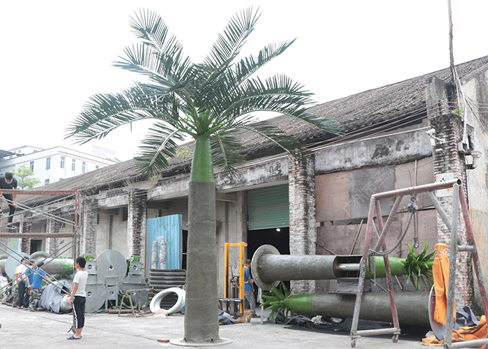 而树叶则是采用镀锌钢做的骨架,外表则是用防水胶布制作而成,在设计之初我们考虑到了预防大风的功能,叶片看似刚强但实则有着很强的柔韧性,瓦象园制作的仿真树经历过7级大风测试并且成功生存,如今暴风雨来袭的南方中大水过后剩下的只有那些铁骨铮铮依旧矗立的仿真树。